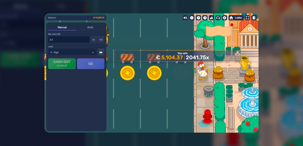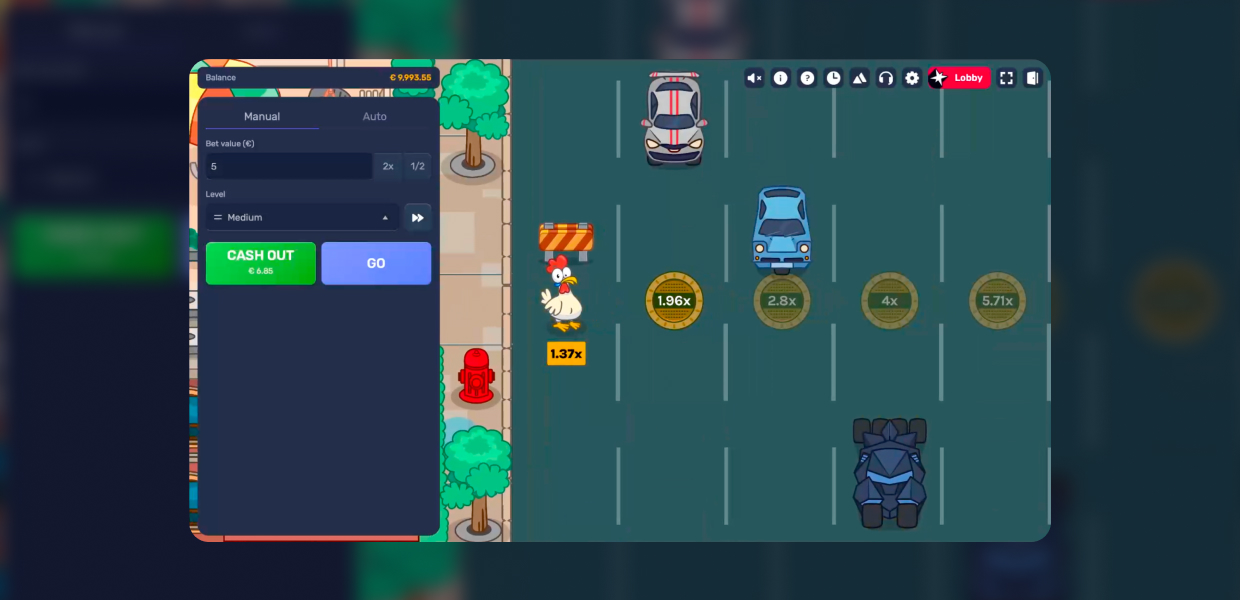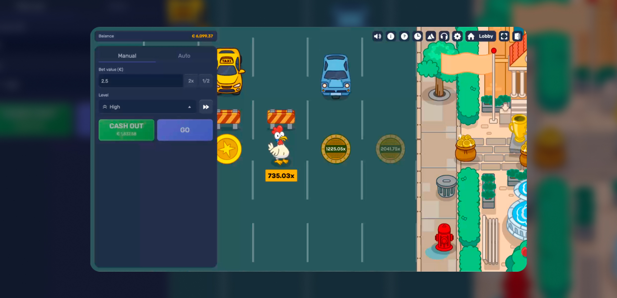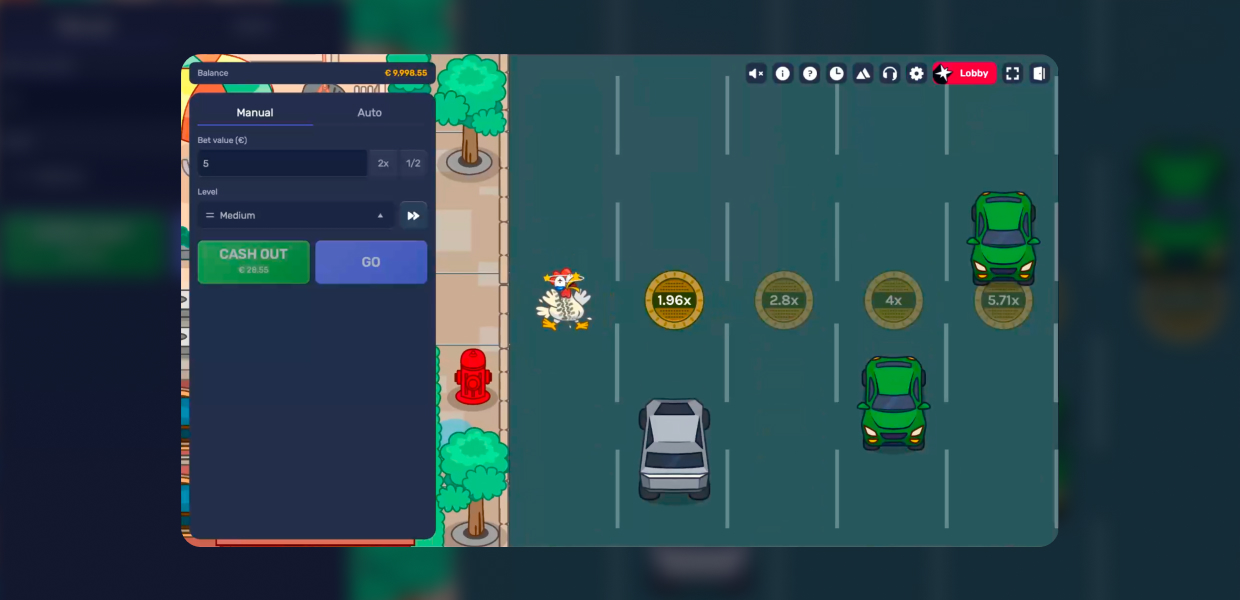 Every lane crossed brings a bigger reward – but the cars don’t care about your plans, so the real question is: do you stop while you’re ahead, or does your chicken have one more crossing in her?