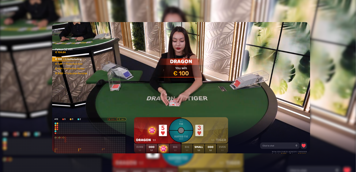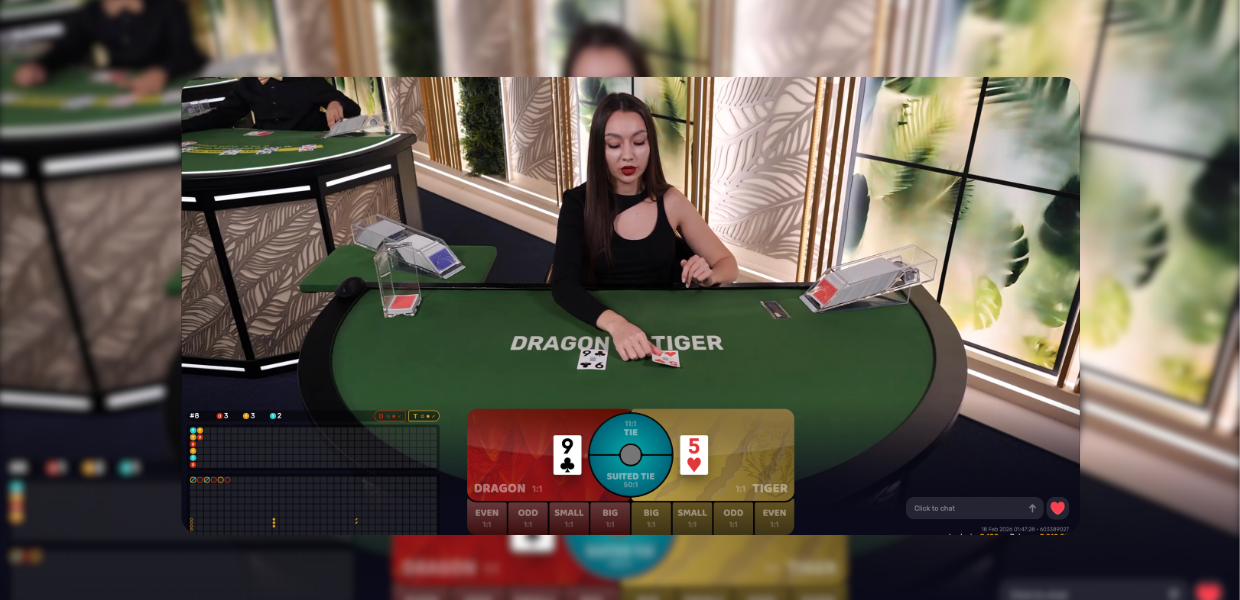 Dragon Tiger brings the ancient rivalry to life with today’s speed: one card for the Dragon, one for the Tiger, with no waiting and no complexity. Fast rounds keep players engaged while side bets and Tie options add depth without slowing the game.