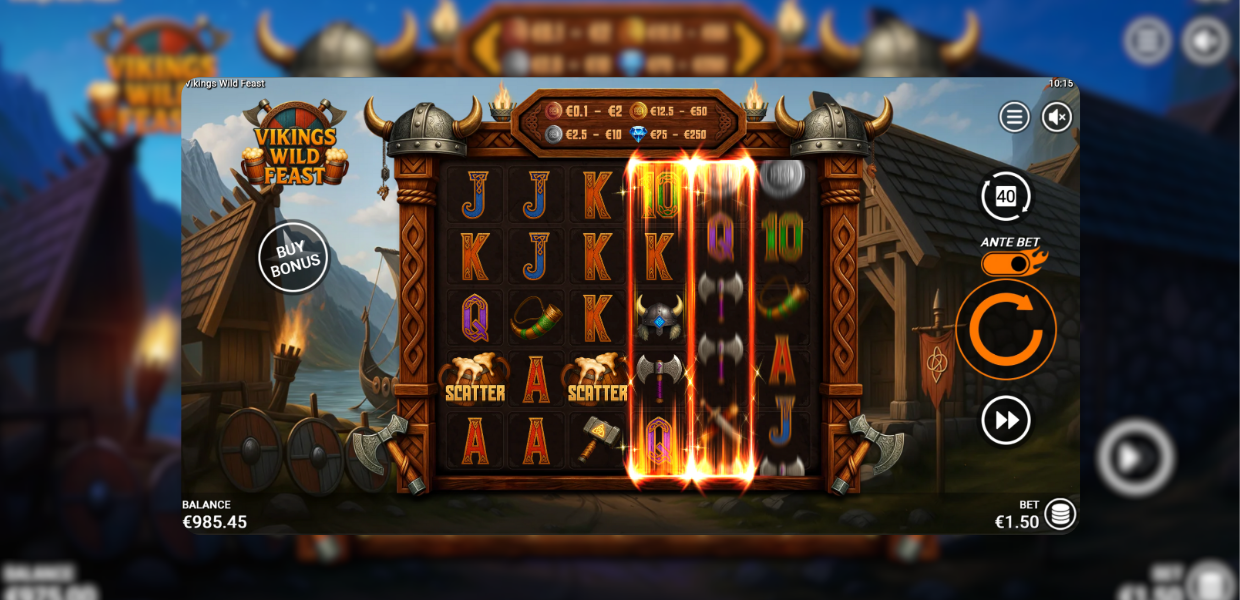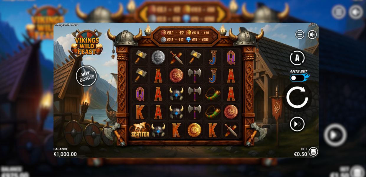 Vikings Wild Feast is a 6×5 Scandinavian-themed game built around four escalating bonus tiers, each unlocking stronger multipliers and higher win potential up to ×10,000 bet.