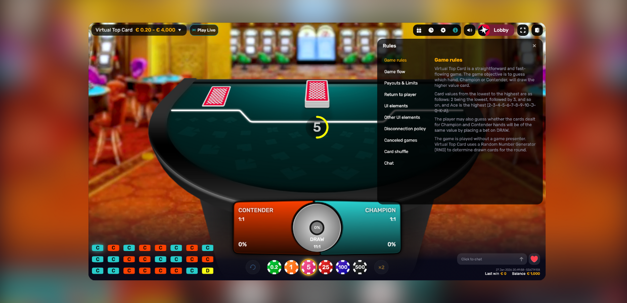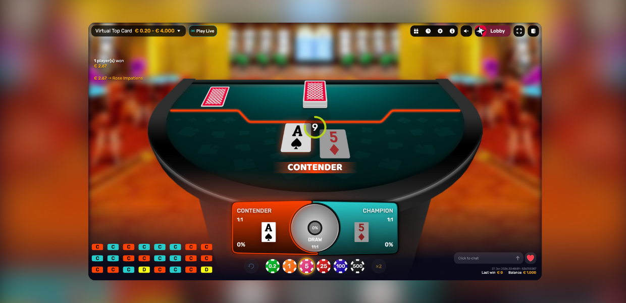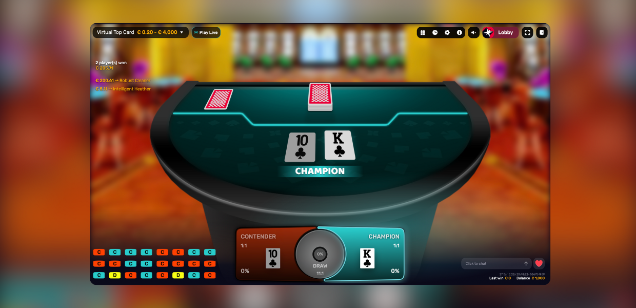 Players simply choose whether the Champion or the Contender will draw the higher card. Virtual Top Card is a fast paced virtual card game built for iGaming operators, offering extensive customization options, smooth platform integration, and flexible use across sports themed events, tournaments, and promotional campaigns.